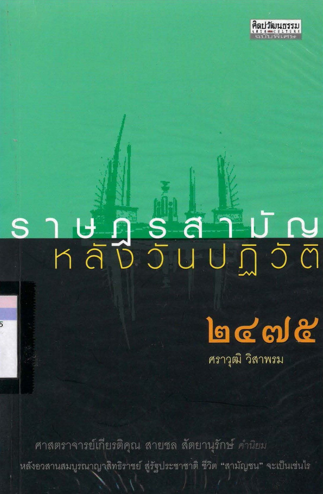 แนะนำหนังสือ : ราษฎรสามัญหลังวันปฏิวัติ 2475 [JQ 1749.ก15 ศ46 2559]